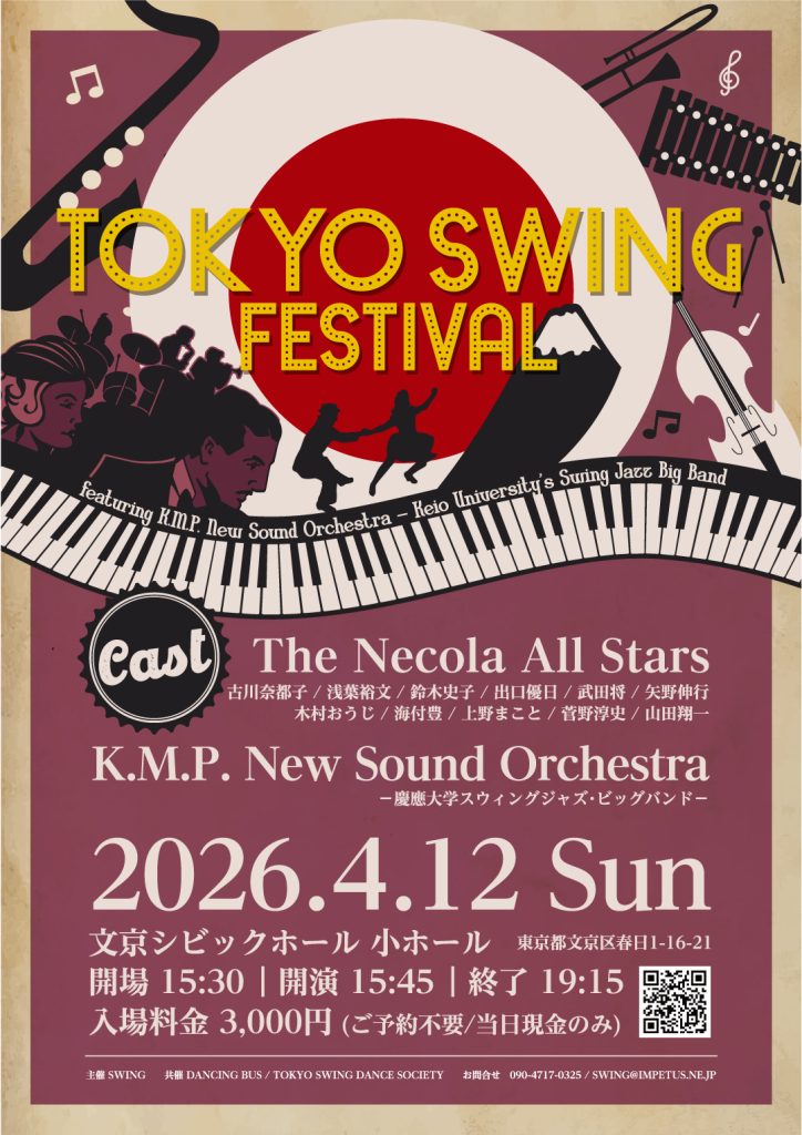 Swing lovers, dancers, music fans—誰もが楽しめる、華やかでエネルギーあふれる時間をお届けします。東京から世界へ最高のSwingを一緒に体感しましょう。